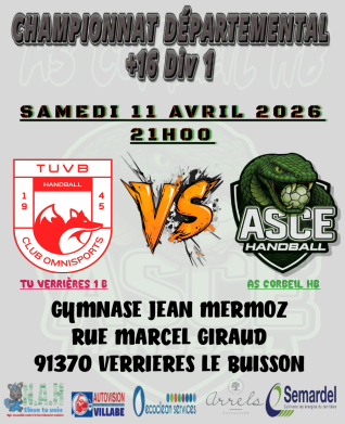 sam. 11 avril 2026 TU VERRIÈRES 1B 35 - 27 SM1 Champ. +16 M DIV 1